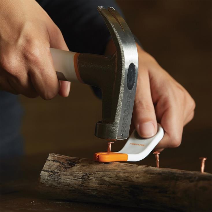 - El martillo de precisión de Fiskars presenta zonas de agarre dobles antideslizantes con dos posiciones de mano diferentes para adaptarse al camino. trabaja
