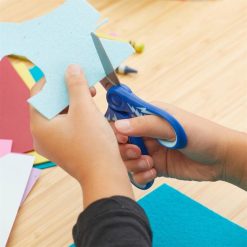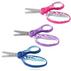 tijeras para niños con punta roma y agarre suave de Fiskars están cuidadosamente diseñadas con hojas con borde de seguridad, una punta roma para mayor seguridad y mangos especialmente diseñados para las manos de los niños en colores brillantes que les encantan. un cómodo mango suave mejora el agarre y reduce la fatiga de la mano, mientras que un bucle para el dedo más grande y un bucle ergonómico para el pulgar también proporcionan un ajuste natural y más cómodo para los dedos de los niños. un ángulo de apertura optimizado también ayuda a los niños a abrir las hojas sin perder el agarre para un mejor control. Además, el mango está diseñado para estar en línea con las hojas para permitir una mayor precisión al cortar en el aire. Ideales para niños de cuatro años en adelante, las tijeras para niños son la manera perfecta para que los niños en crecimiento continúen desarrollando sus habilidades de corte.