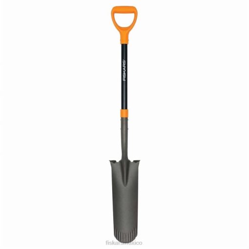 - La pala de drenaje Fiskars de alta resistencia cuenta con una cabeza de acero de gran calibre y es ideal para cavar agujeros pequeños y profundos, hacer zanjas y otras necesidades de plantación