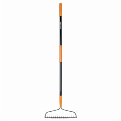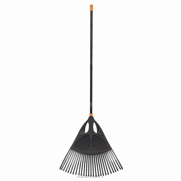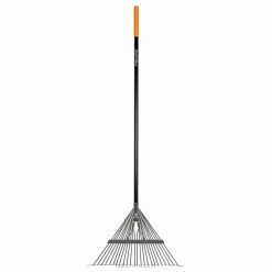 - el rastrillo de hojas fiskars cuenta con púas duraderas y un mango de aluminio liviano para rastrillar y mover las hojas de forma rápida y sencilla